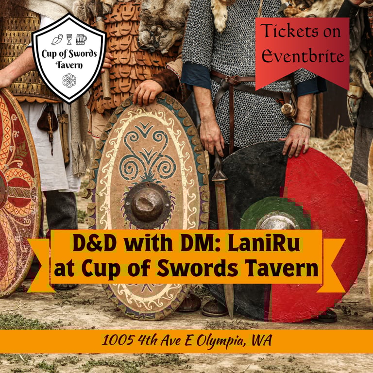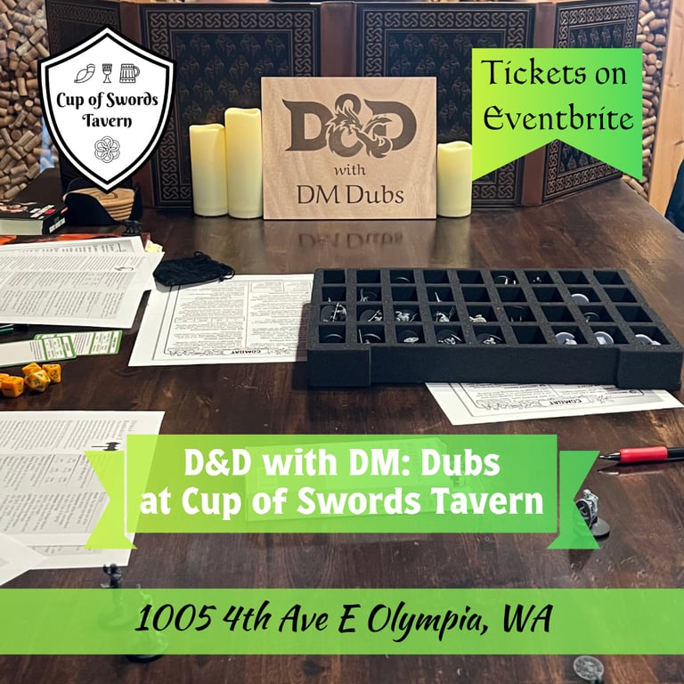 Space is limited, so get your tickets now before they sell out! Tickets include your first drink and go to paying your DM. Series 5e, up to 8 players, beginner level, character sheets are provided, we have dice, but recommend that you bring your own.